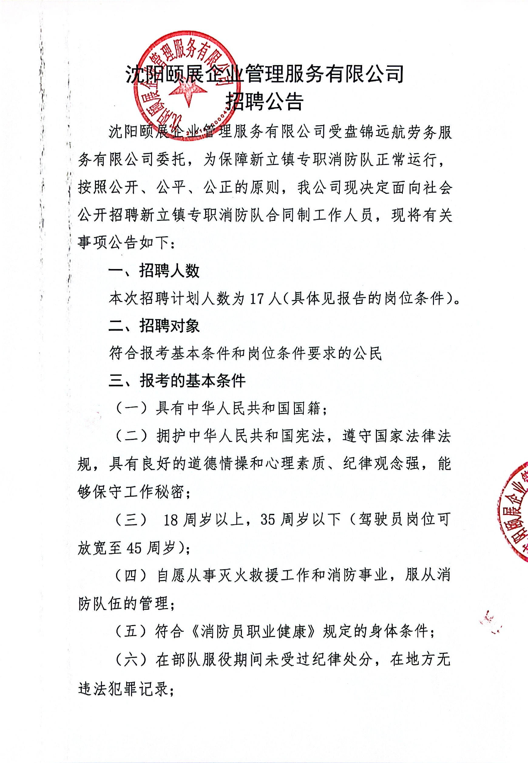 招聘单位:沈阳颐展企业管理服务有限公司