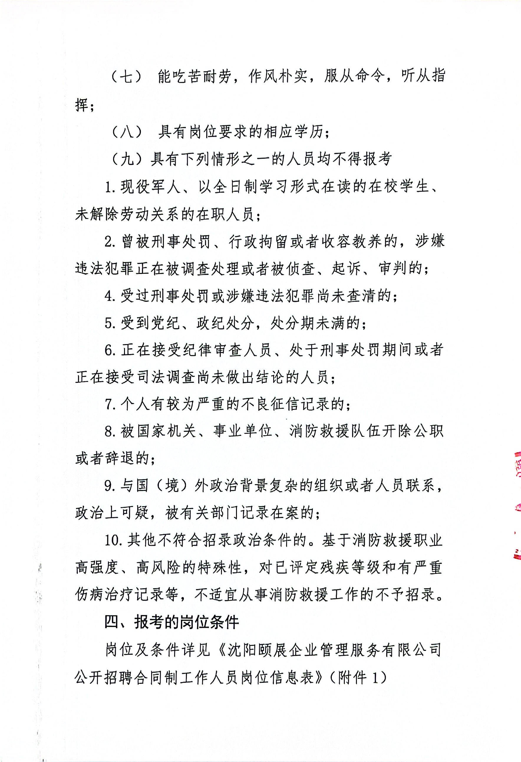 3.身体素质:身体健康,无高血压、心脏病、传染性疾病等,无色盲、色弱等影响工作的疾病;服务员能适应长时间站立、弯腰等工作姿势;房建整修工能适应蹲起、搬运等体力劳动,能适应高空、高温、强光、有限空间作业,能适应经常性夜间作业。